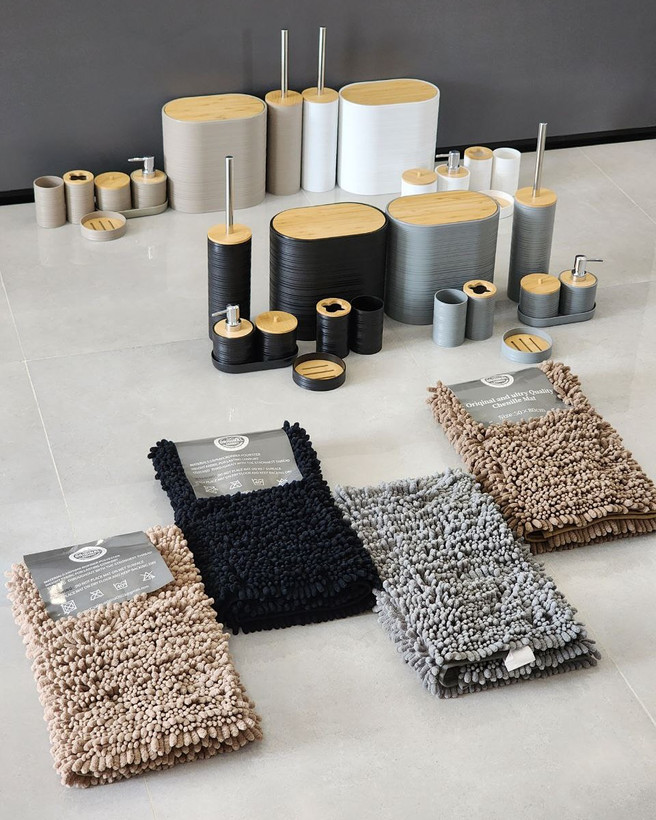 ست بهداشتی ۸ پارچه محصول ترکیه کیفیت عالی جنس اکرولیک ،ضد آب شامل سطل فرچه توالت جامایع جامسواکی جاصابونی جای پد بهداشتی جای خمیر دندان استند جامایع تضمین اصل بودن کالا کرم_سفید_مشکی_طوسی