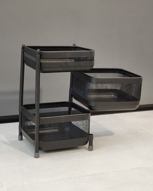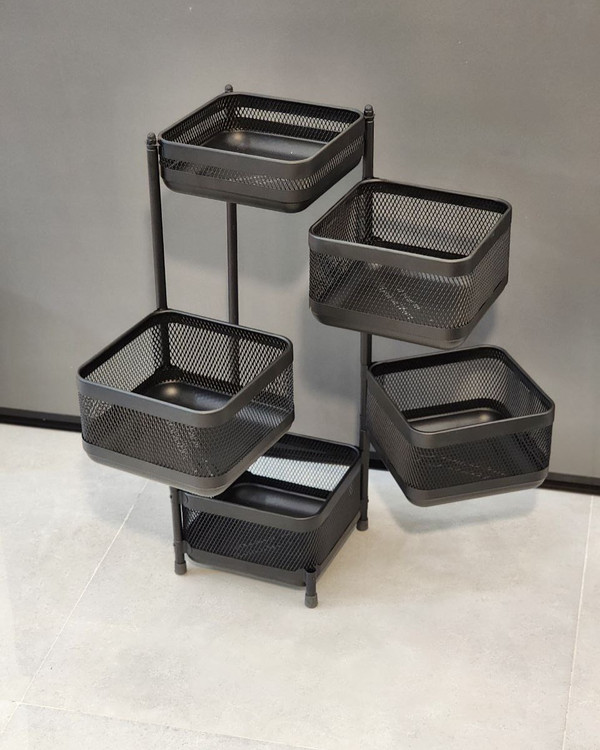 سبد سیب زمینی پیاز پرطرفدار که هم کیفیتش خوبه هم کاملا مقاوم اینم از جدید ترین مدل از سبد سیب زمینی بدنه فلز کوره ای باکیفیت(ضد زنگ) سبد های متحرک (براحتی تمیز میشه و بدون سرو صدا باز و بست) پایه پلاستیکی داره که جلوگیری از خط و خش میکنه ارتفاع دو طبقه مربع : ۴۲ سانت ارتفاع سه طبقه مربع ۵۹ سانت ارتفاع چهار طبقه مربع : ۷۶ ارتفاع پنج طبقه مربع : ۹۳ طول هر صفحه مربع : ۲۴ سانت توری بودن دور سبد سیب زمینی باعث جریان بهتر هوا میشه و مواد غذایی دیر تر خراب میشه کفه کار هم صفحه فلزی داره که هم مقاومش کرده و هم پوسته های صیفی جات به طبقات پایین نمیریزه