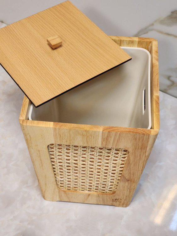 شیک ترین سطل و دستمال مدل حصیر بامبو طراحی جدید و خاص بسیار با کیفیت و شیک ساخته شده از بهترین چوب سطل دارای لایه داخلی پلاستیکی از مواد اولیه درجه یک که باعث شستشو آسان میشه ارتفاع سطل ۲۹ طول و عرض ۲۲.۵۲۲.۵ طول دستمال ۲۵ عرض دستمال ۱۳ ارتفاع دستمال ۱۰