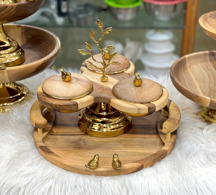 سرویس چوب برگ و گنجشک جنس چوب گردو درجه یک