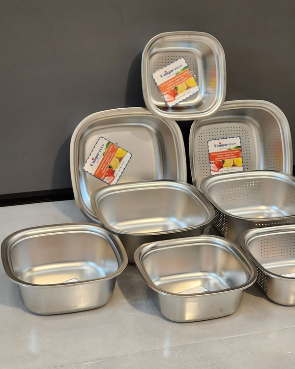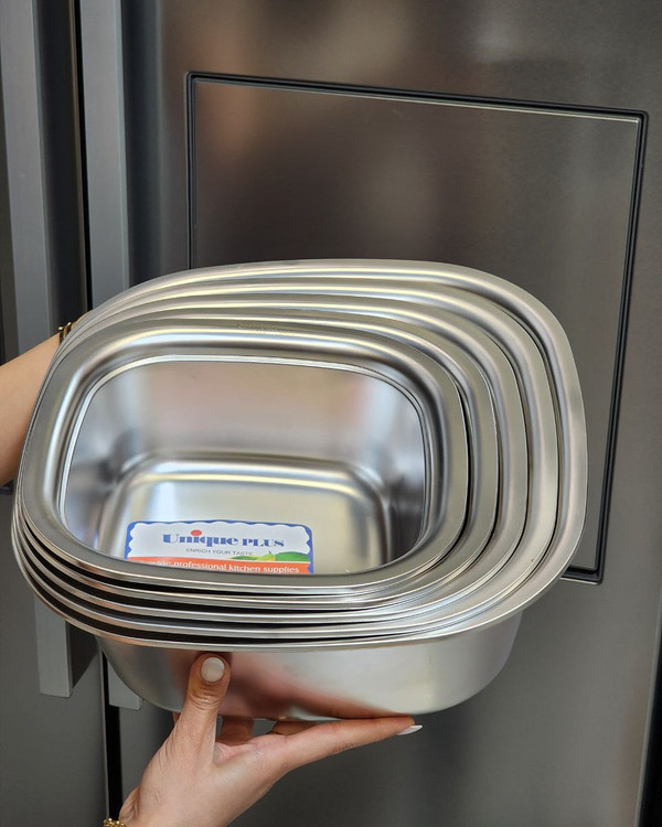 لگن و آبکش استیل ۱۰ پارچه برند یونیک (وارداتی) آهنربا نگیر ضخیم و رنگ مات کیفیت عالی در پنج سایز مختلف ابعاد : ۲۴۲۶۲۸۳۰۳۲ سانت ۵ آبکش و گن : ۳.۸۰۰