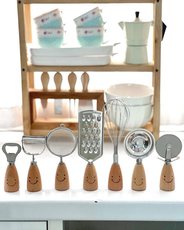 این ست ابزار آشپزخونه 11 پارچه شامل : ابزارهای صبحانه خوری تفاله گیر رنده دربازکن پوسکن همزن برش کیک جداکننده زرده تخم مرغ