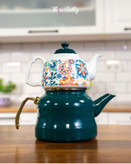 شارژ چندین باره کتری لعابی و قوری چینی برند Miss Betty جنس کتری لعابی ه جنس قوری چینی سبک حجم کتری 2/6 لیتری حجم قوری 1/15 لیتری دستگیره در اثر حرارت داغ نمیشود در 6 طرح و رنگ مختلف