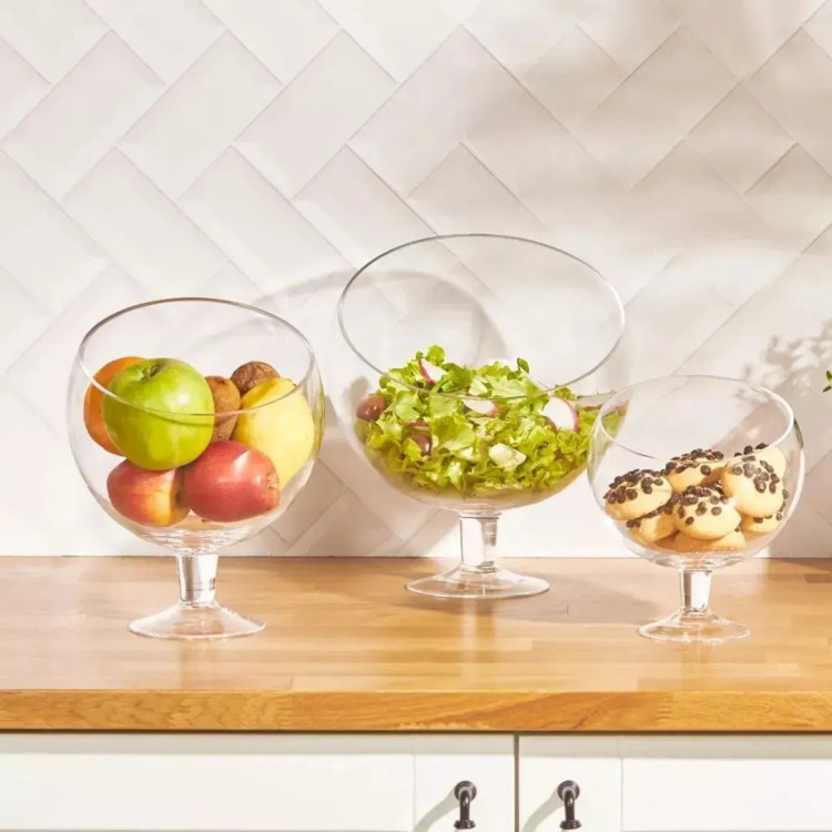 شارژ مجدد در ۳ سایز ظرف مدل کج پایه دار ترک برند آلگرگلس ترکیه کیفیت عالی و کاملا شفاف فوق العاده شیک و خاص موجود در ۳ سایز پرکاربرد مناسب برای سرو میوه، سالاد، دسر، آجیل، انار، شکلات، پاستیل، کوکی و سایز یک قطر ۱۴.۵ سانت سایز دو قطر ۱۹ سانت سایز سه قطر ۲۵ سانت