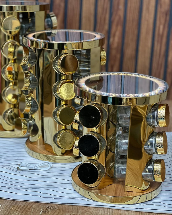 جا ادویه چرخشی چراغ دار مخصوص خاص پسنده ها پایه بامبو جنس استیل کیفیت فوق العاده عالی