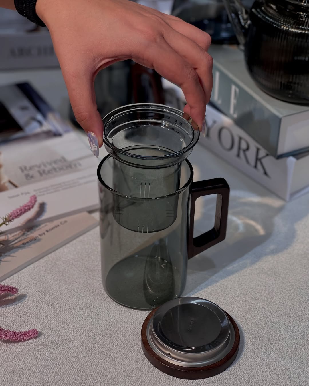 شماره 6 قوری دسته بغل چوبی حجم:700 سی سی
