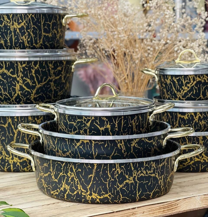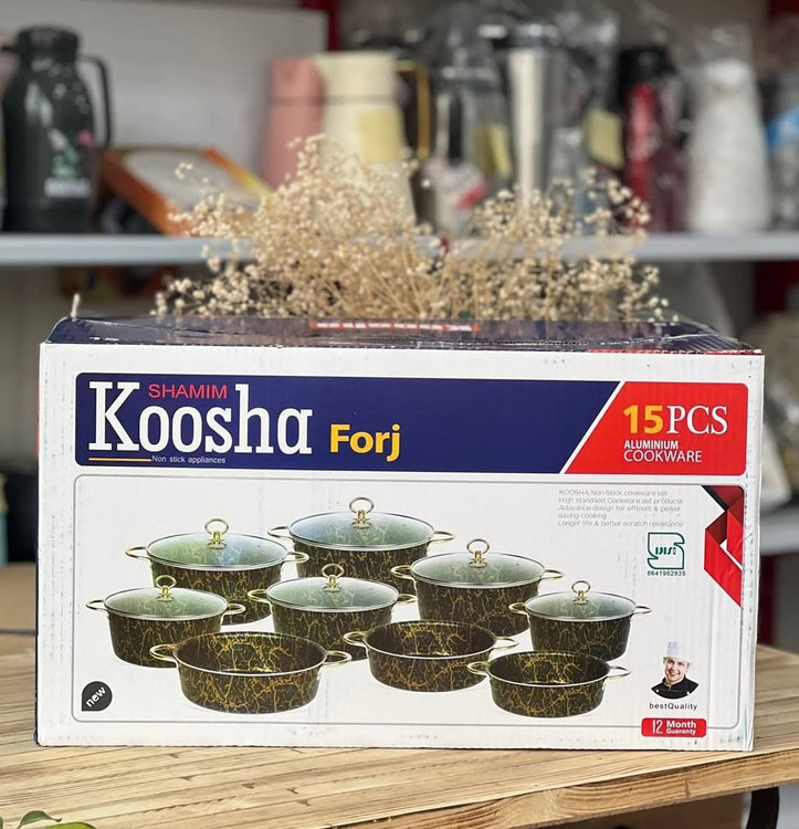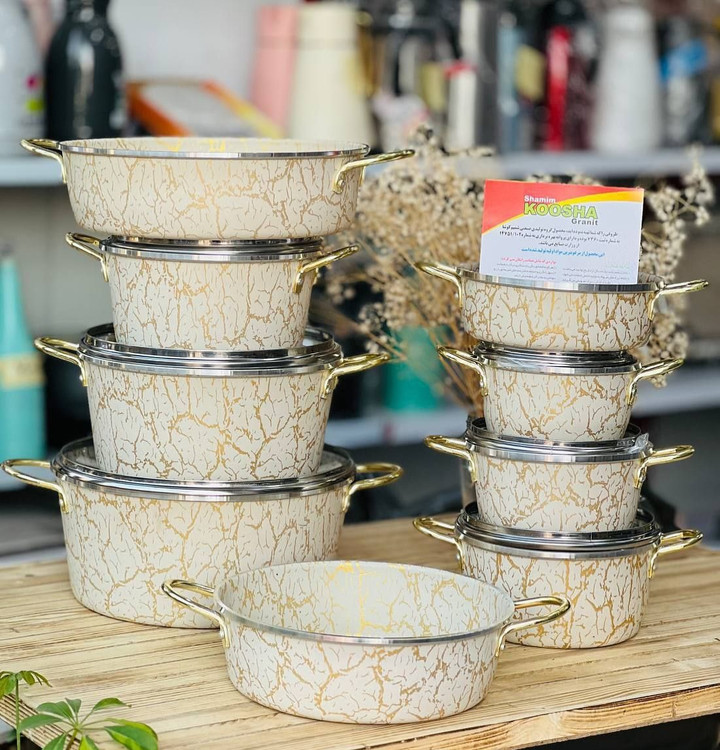نام کالا: ۱۵ پارچه ماربل کوشا مشخصات: طرح سنگ (ماربل) سایز قابلمه ها: ۲۸،۲۴،۲۰،۱۸،۱۶،۱۴ سایز تابه ها: ۲۸،۲۴،۱۸