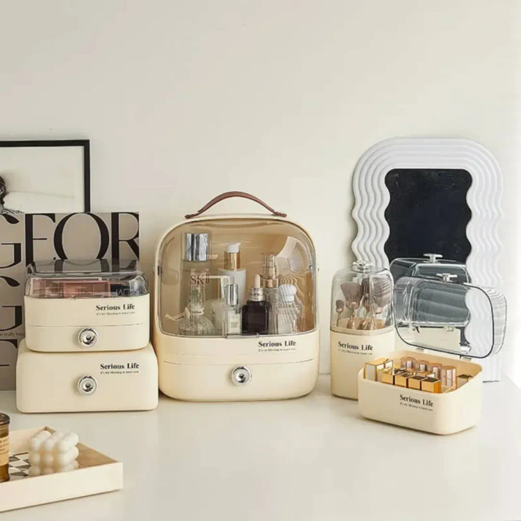 ست استند آرایشی و جامدادی محصول درجه یک وارداتی با نوشته Serious Life جنس بدنه پروپیلن (PP+ABŞ) کیفیت عالی و رنگ ثابت دسته استند آرایشی چرمی جامدادی دارای حفظه