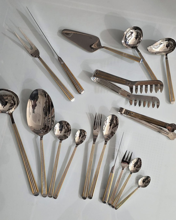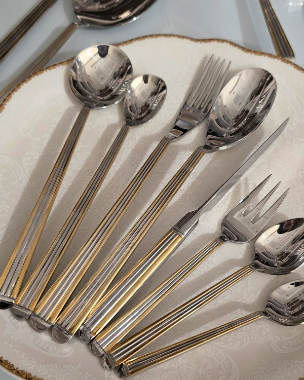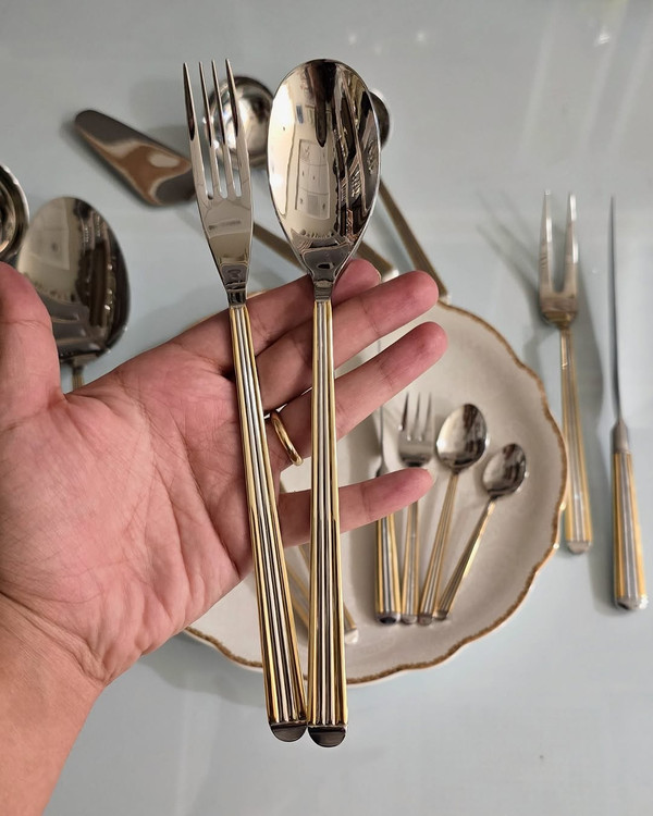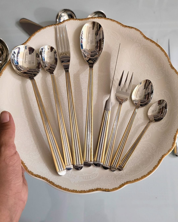 بعد مدتها با پرفروشترین قالب #قاشق_چنگال بازار اومدیم ⭕️ورق بزنید و اطلاعات کاملش رو ببینید⭕️ 🔱مشخصات کلی سرویس ۱۵۱ پارچه ۳۰ نفره اقلام : قاشق غذاخوری ۳۰ عدد چنگال غذاخوری ۳۰ عدد قاشق مربا خوری ۱۲ عدد قاشق شربت خوری ۱۲ عدد قاشق چایخوری ۱۲ عدد کارد میوه خوری ۱۸ عدد چنگال میوه ۱۸ عدد قاشق خورشت ۶ عدد کفگیر برنج ۴ عدد ملاقه بزرگ ۲ عدد ملاقه کوچک ۲ عدد کفگیر کیک ۱ عدد کارد مرغ ۱ عدد چنگال مرغ ۱ عدد انبر سالاد ۱ عدد انبر یخ ۱ عدد 🔅