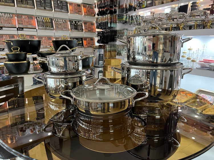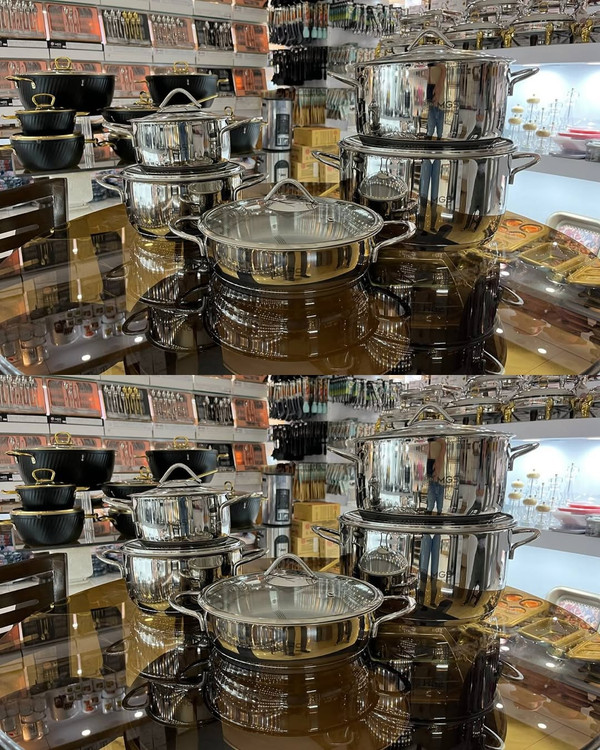 سرویس قابلمه های استیل برند ام جی اس فوق العاده با کیفیت و طراحی منحصر بفرد جنس استیل در دو رنگ طلایی و نقره ای کف ه چدن دستگیره های استیل طرح اینداکشن(پخش حرارت به صورت یکسان) نچسب و رنگ ثابت استیل ۱۸/۱۰ درب پیرکس بهمراه استیل ضد زنگ ۱۰ پارچه دارای ۴ قابلمه،یک تابه