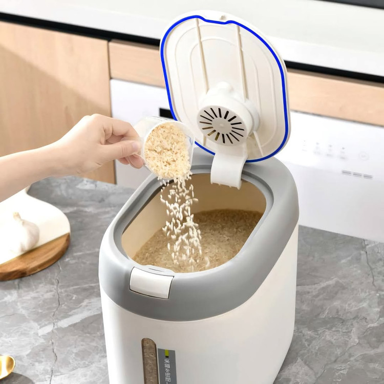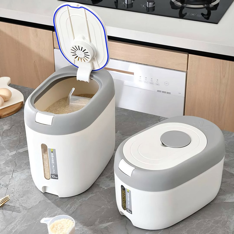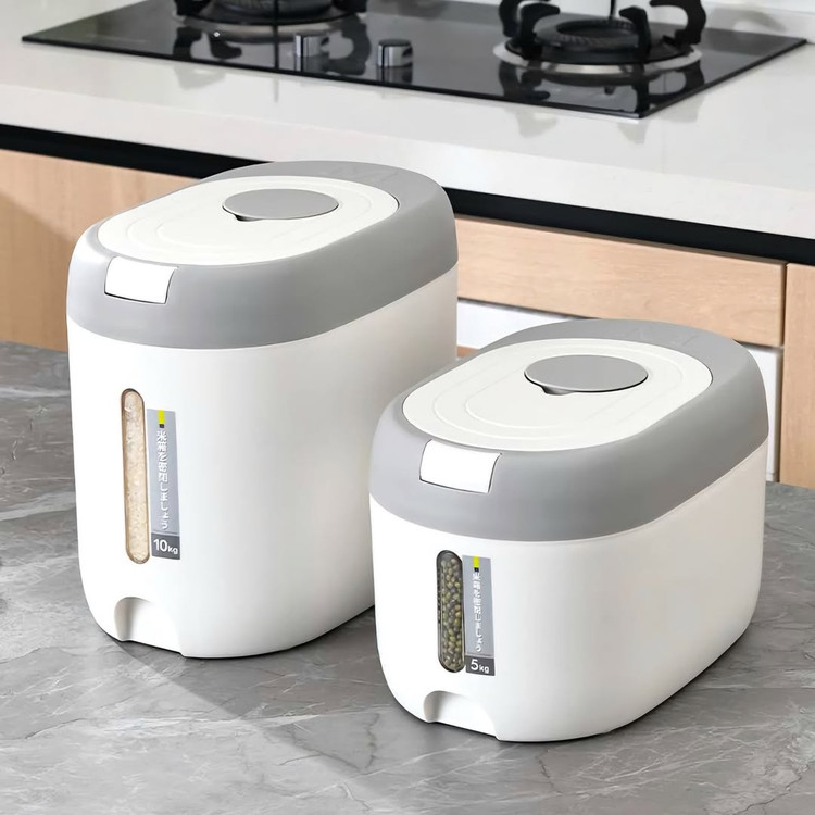 جدیدترین جابرنجی و جاحبوباتی درب طوسی در دو حجم ۱۰ کیلو و ۵ کیلوگرم وارداتی کیفیت بسیار عالی اگه میخوای برنج یا حبوباتت حشره نزنه این مدل بهترین گزینست باز شدن درب با فشار یک دکمه بصورت ۳۶۰ درجه بسته شدن درب بصورت مگنتی جنس بدنه ABS+PP (پلیمرترموپلاستیک + پلیمر هیدروکربنی) دارای درب واشردار کاملا مهر و موم ضد حشرات و رطوبت (کاملا کیپ میشود) درب بازشونده اتوماتیک دکمه ای ۳۶۰ درجه دارای تهویه در قسمت درب و محل قرارگیری (میخک ، سیر و رطوبت گیر) دارای یک عدد رطوبت گیر مخصوص محفظه تهویه دارای یک عدد پیمانه لیوانی دسته دار لیتری اکرولیک رنگبندی فقط سفید طوسی حجم ۱۰ کیلوگرم (دقیق) ارتفاع ۲۶.۵ طول ۳۰.۸ عرض ۱۹.۵ حجم ۵ کیلوگرم (دقیق) ارتفاع ۱۸ طول ۳۰.۸ عرض ۱9.5