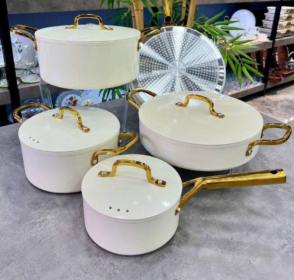سرویس قابلمه9پارچه محصول ترکیه برند arow مدل Olbia جنسمحصول آلومینیوم ریخته گری شده مقاومت بسیار بالا در برابر خراش جنسداخلی محصول: سرامیک قابلیت نچسب و نسوز دستگیره ها استیل و در اثر حرارت داغ نمیشود بدنه کاملا ضد لک رنگ ثابت و بدون تغییر رنگ سایزبندی قابلمه سایز 24 قابلمه سایز 20 تابه دو دسته سایز 26 تابه تک دسته سایز 28 شیر جوش سایز 16
