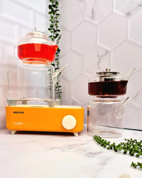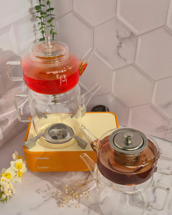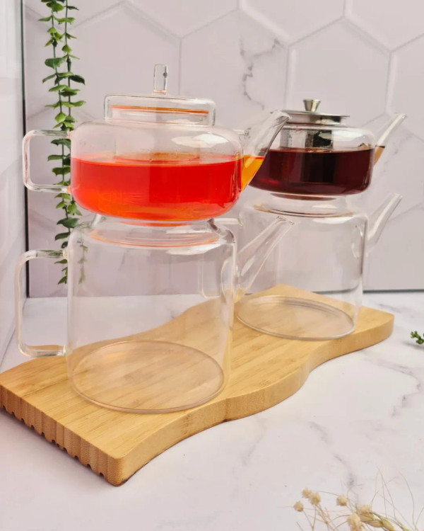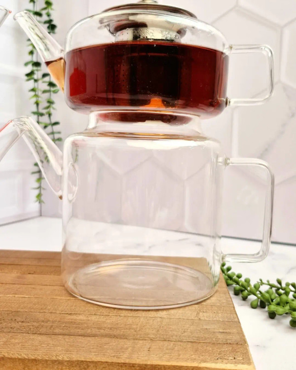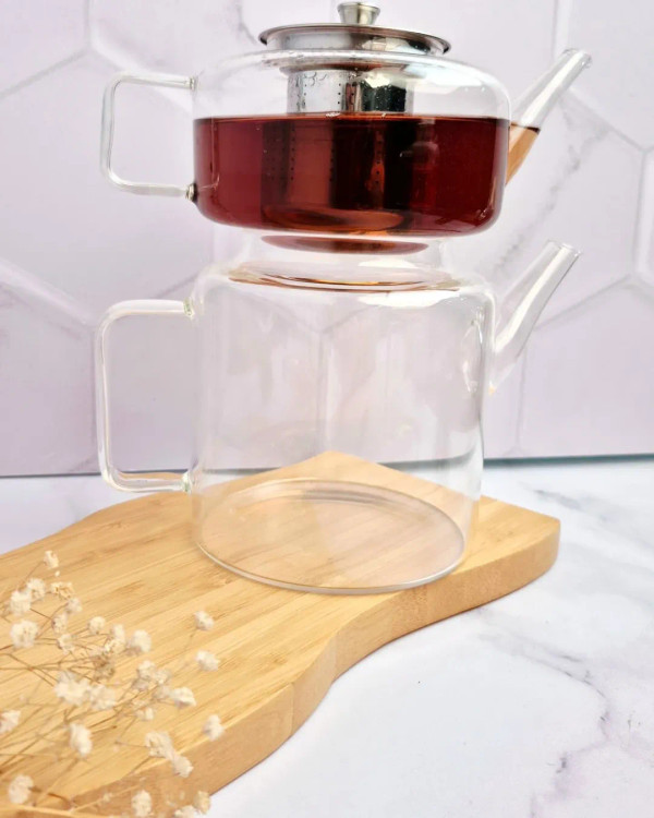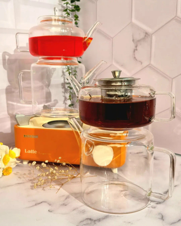 %50 کتری قوری پیرکس برند IMAR کیفیت بسیار عالی شعله مستقیم و قابل استفاده روی اجاق گاز کاملا آنتی شوک بروسیلیکات بالا قابلیت قرارگرفتن در ماشین ظرفشویی قوری دارای کف لبه دار و قرارگیری بدون لغزش روی کتری درب و فیلتر استیل ارتفاع کلی ۲۲ سانت حجم کتری 1/800میلی لیتر حجم قوری 950میلی لیتر قطر دهانه کتری ۹ قطر کف ۱۲.۵ قطر دهانه قوری ۸ قطر کف ۱۲