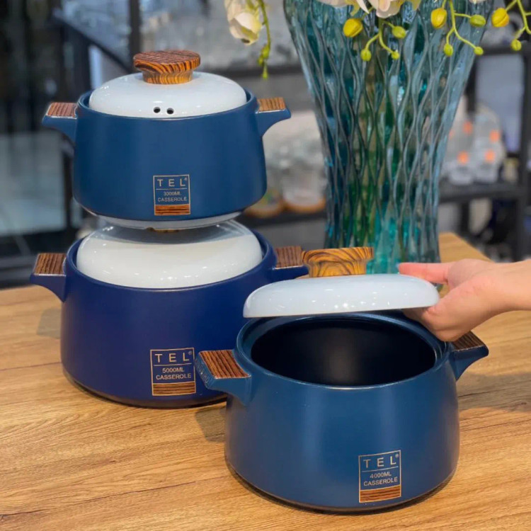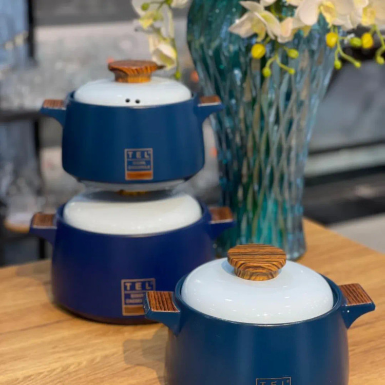 شارژ چندین باره ست قابلمه سنگی برند جهانی معتبر TEL مناسب برای همه ی اجاق گازی ، برقی و سرامیکی قابلیت استفاده در مایکروفر و ماشین ظرفشویی تحمل حرارت تا 650 درجه تحمل سرما تا 20 درجه در سه سایز ۲لیتری 3لیتری 4 لیتری