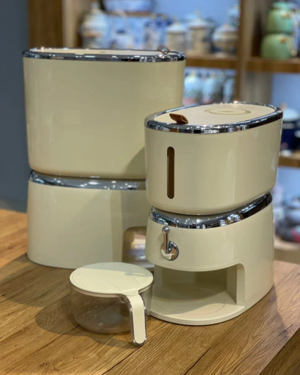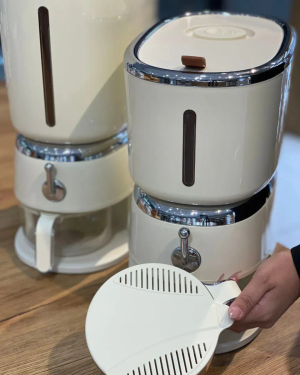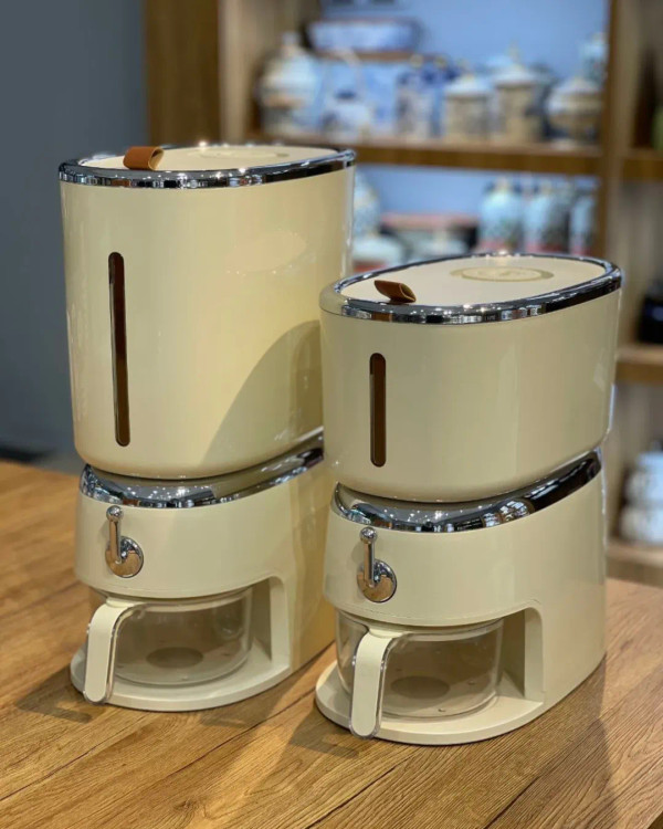 سری جدید جا برنجی و جا حبوبات محصول وارداتی جنس بدنه ترکیب پلی پروپیلن +پلیمرترموپلاستک و اکرولیک (ABS+pp+pET) خروجی برنج بصورت اهرمی دارای محفظه نگهدارنده سیر و میخک وجهت جلوگیری از حشره زدگی دارای پیمانه جهت شستشو و آبکشی در دو سایز 6 و 10 کیلو __________________________________________________