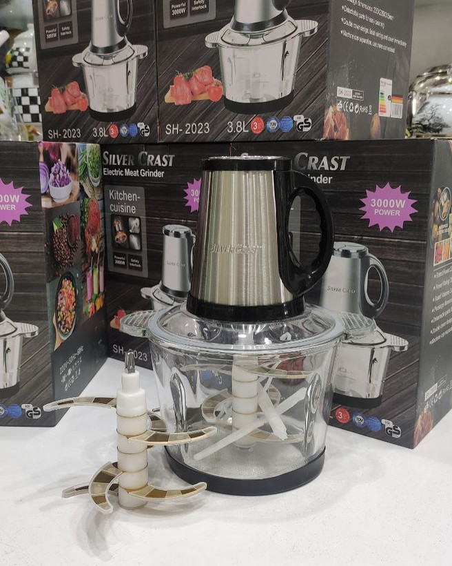 خرد کن سیلور کرست حک شده موتور دو سرعته پر قدرت کیفیت فوق العاده تضمینی شفت فلزی کاسه پیرکس ۳/۸ لیتر شش تیغه تیتانیوم طلایی دارای همزن