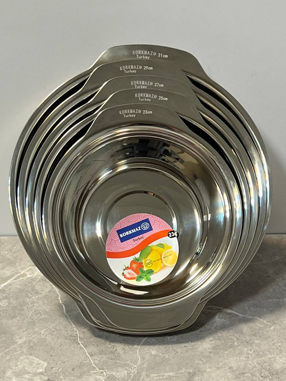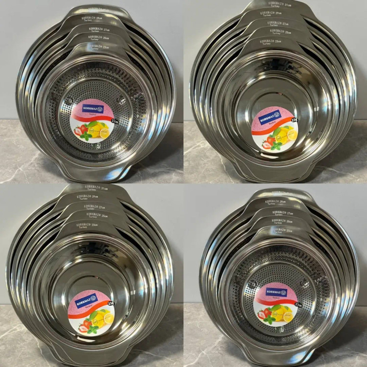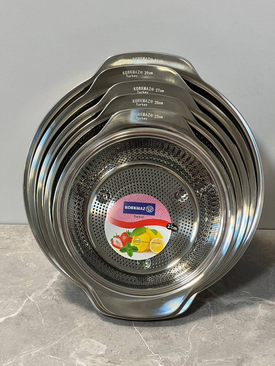 اگر دنبال کیفیت و یه کار عمری میگردی من بهت این ست رو میدم لگن و آبکش ۵ سایز گرد دسته یک تکه درجه یک استیل نگیر برند کرکماز حک شده Korkmaz turkey ساخت چين سايز ٢۳۲۵۲۷۲۹۳۱ ت ست آبکش و ست لگن به صورت جداگانه هم قابل سفارش میباشد