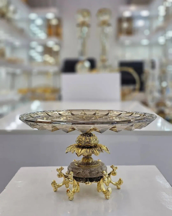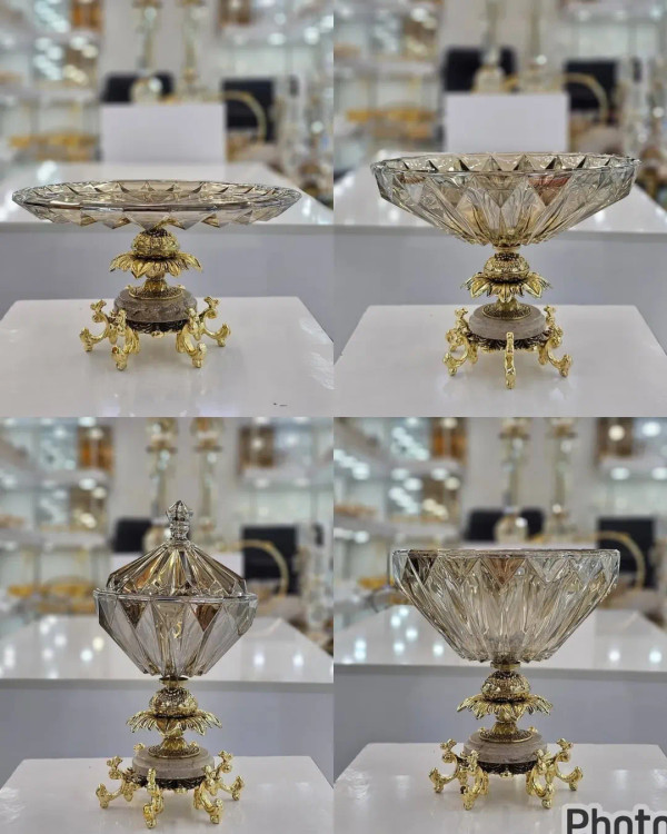 🌻سرویس الیزه طلاکوب پایه ققنوس🌻 کیفیت عالی 4تیکه پذیرایی میوه شیرینی اجیل شکلات قیمت 6.900.000 سرویس 6نفره کامل با پیاله پیش فنجان قندان