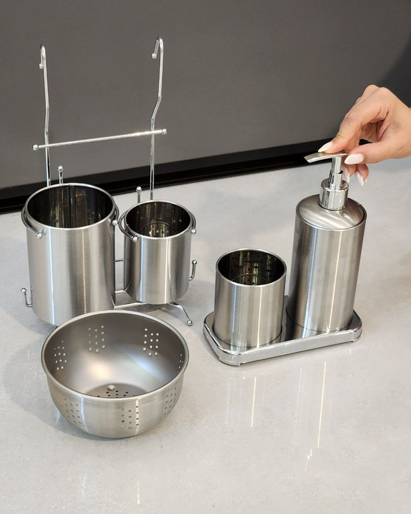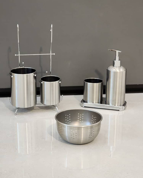 ست سینک استیل صفر تا صد کار از استیل وارداتی ضد زنگ و کیفیت فووووق العاده عالی اقلامش شامل جاقاشقی جامایع جا اسکاجی تفاله گیر