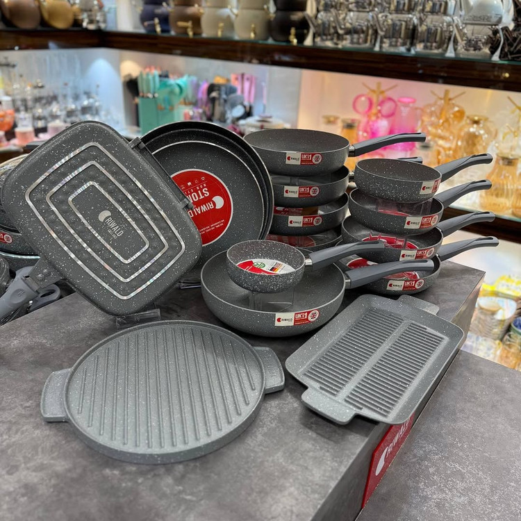 عکس کاملا لایو بدون افکت قابلمه های گرانیتی از برند Riwald انگلستان پوشش داخلی گرانیتی از برند greblon آلمان پوشش داخل و بیرون سوپر گرانیتی دارای استاندارد و کیفیت A+++ دسته های باکالیتی مقاوم تا ۲۱۰ درجه حرارت این محصول با احترام تقدیم شما عزیزان میگردد به شرح ذیل تابه تک دسته ۱۴ 780ت تابه تک دسته ۱۶ ۸۳۰ ت تابه تک دسته ۱۸ ۸۸۰ ت تابه تک دسته ۲۰ ۹۳۰ ت تابه تک دسته ۲۲ ۹۸۰ ت تابه تک دسته ۲۴ ۱،۰۸۰ ت تابه تک دسته ۲۶ ۱،۱۸۰ ت تابه تک دسته ۲۸ ۱،۲۸۰ ت تابه تک دسته ۳۰ ۱،۳۸۰ ت سینی فر سایز ۲۶ ۶۳۰ ت سینی فر سایز ۲۸ ۶۸۰ ت سینی فر سایز ۳۰ 780ت سینی فر سایز ۳۲ ۸۸۰ ت تابه وک ۲۶ بدون درب ۱،۱۸۰ ت تابه وک ۲۸ بدون درب ۱،۳۸۰ ت تابه رژیمی دو طرفه ۲،۶۸۰ ت صفحه گریل گرد ۲۹ ۱، صفحه گریل مستطیل ۳۲ ۱،۵۸۰